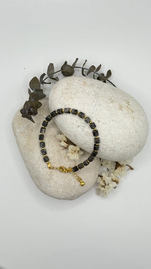 Black Obsidian Bracelet: Featuring Black Obsidian gems, known for their protective qualities, with a string of three delicate Sandstone Freshwater Pearls in the middle for that refined, elevated look.