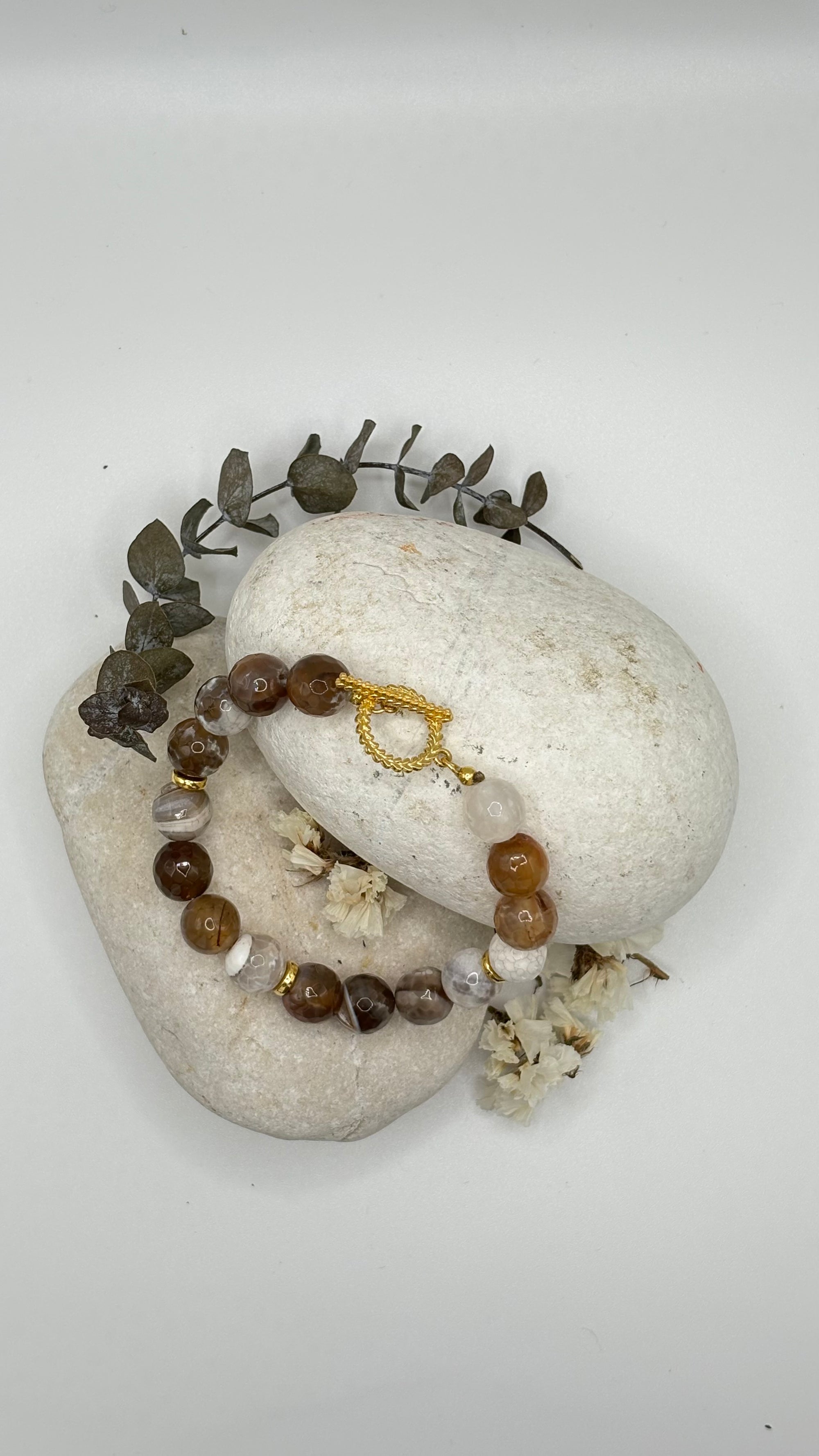 Large Gemmy Bracelet: Made with Coffee Fire Agate stones, swirling with shades of coffee and milk for that cozy, morning kopi vibe. These stones are all about warmth, grounding, and calming energy—just like your favorite cup of joe.