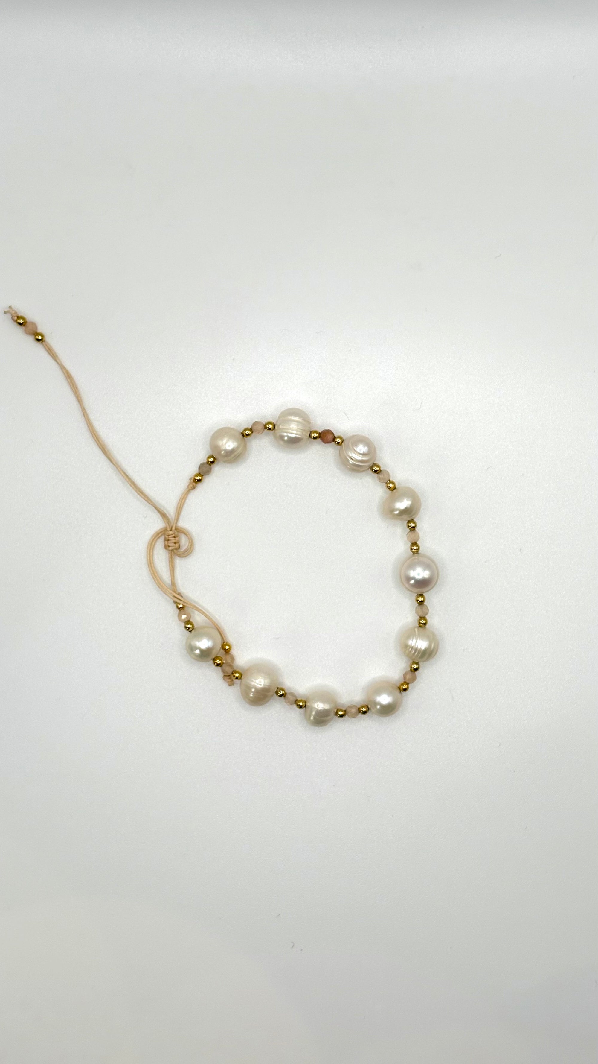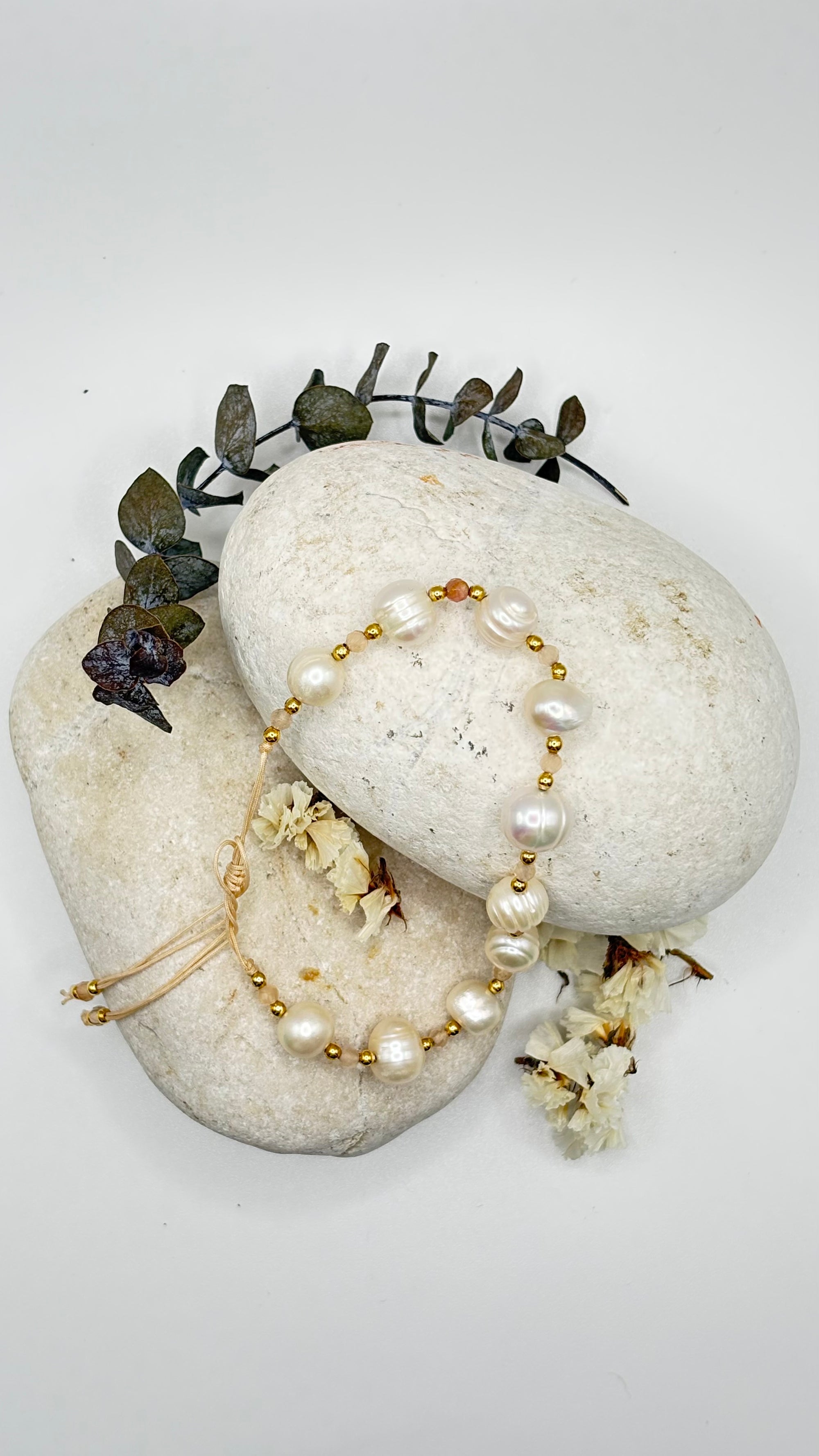 Medium Freshwater Pearls Bracelet: Alternating Sandstone Pearls, offering a sophisticated shimmer that reflects the island’s serene glow.